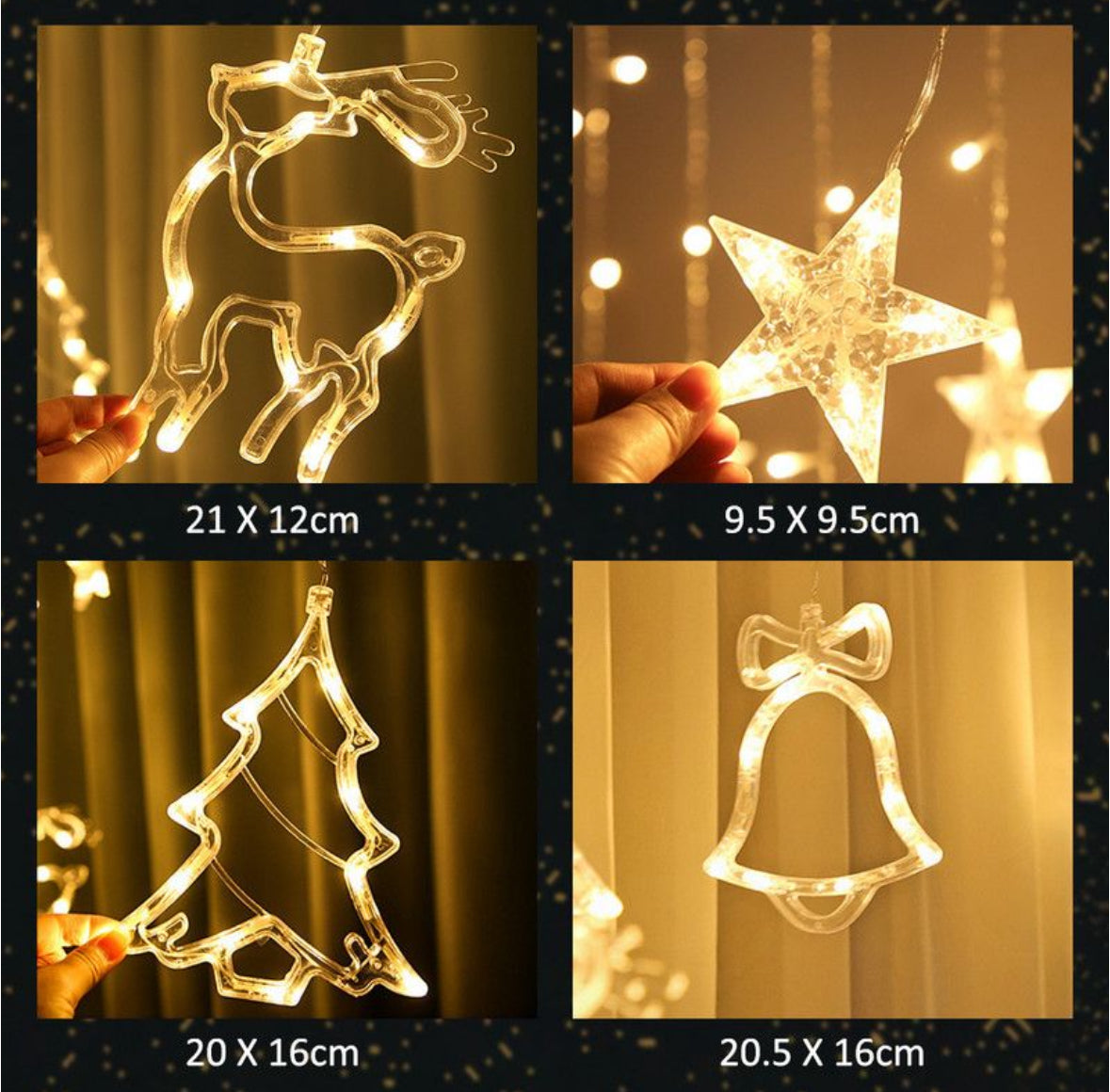 [Product Specifications] Each string of lights includes 4 different types of decorations, which are 21 12 cm, 9.5 9.5 cm, 20 16 cm, 20.5 16 cm. The total length is 3.5 meters, 138 LED lamp beads, high efficiency and energy saving, can be placed outdoors for a long time. Very energy-saving and environmentally friendly, with exposure to natural light.