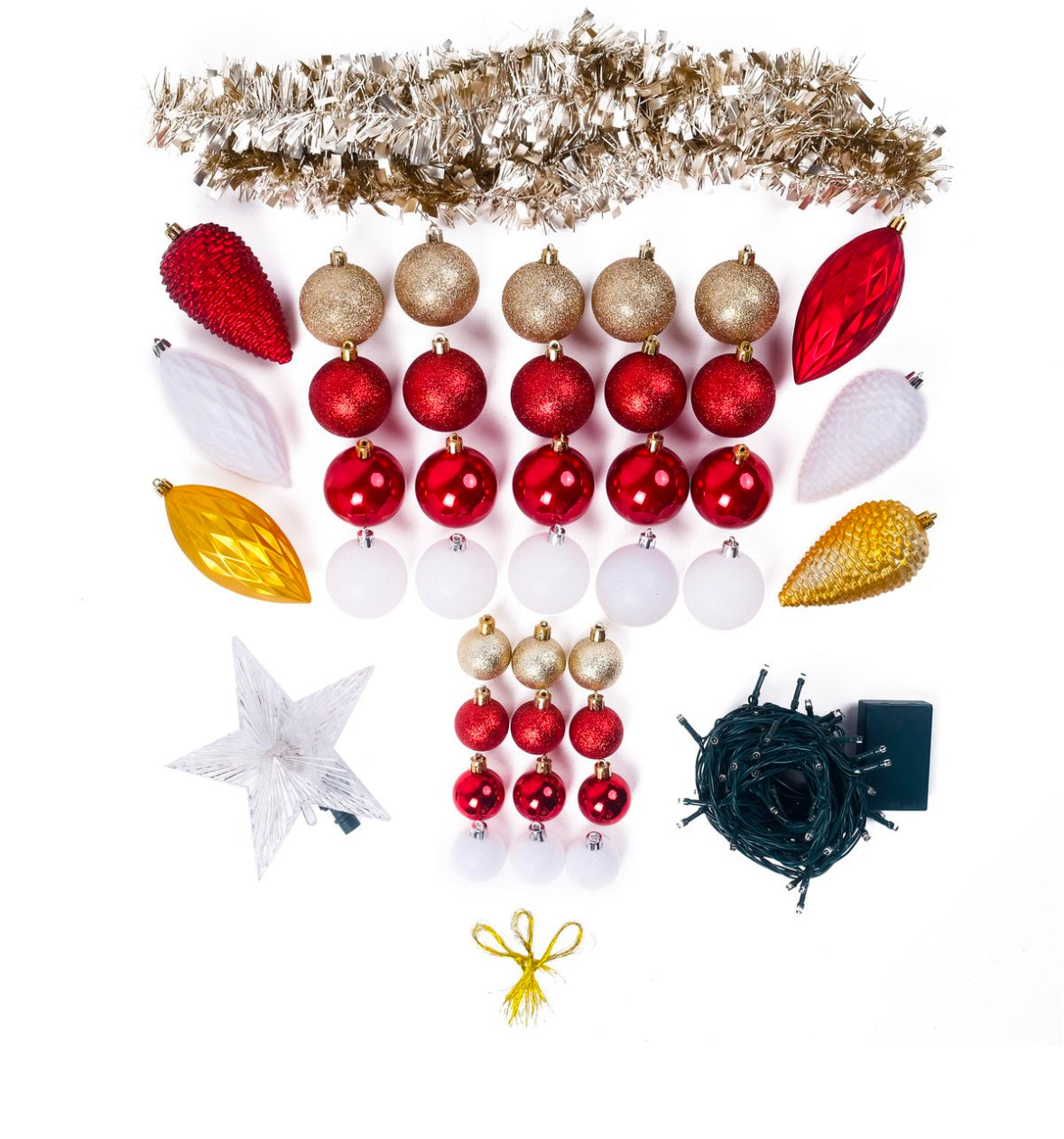 Traditional with it s red, white and gold decoration pack, the 1.8m Noel Christmas Tree is dressed with berry clusters and pine cones. Designed with 500 tips and a mixture of pine and bottle brush, the 1.8m Noel Christmas Tree is a classic beauty that will never go out of style. Offering a full Christmas offering, it comes with everything needed to decorate it; lights, decorations, tinsel and a flashing star tree topper.