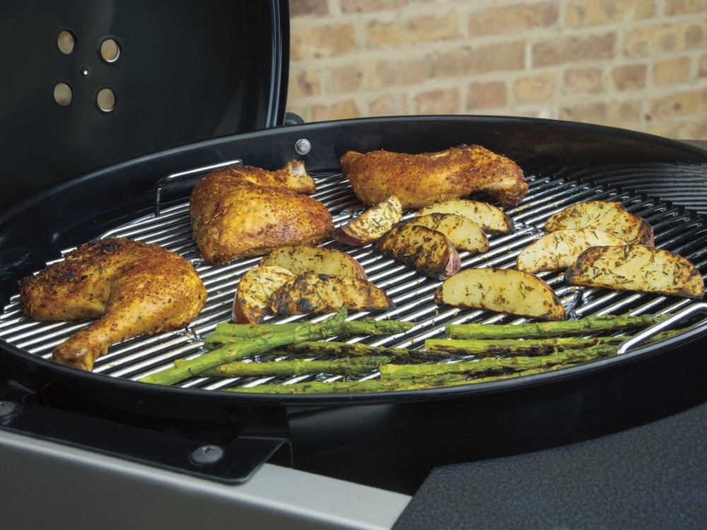 • The GBS hinged Cooking Grate housed inside the barbecue is triple-plated and rust resistant