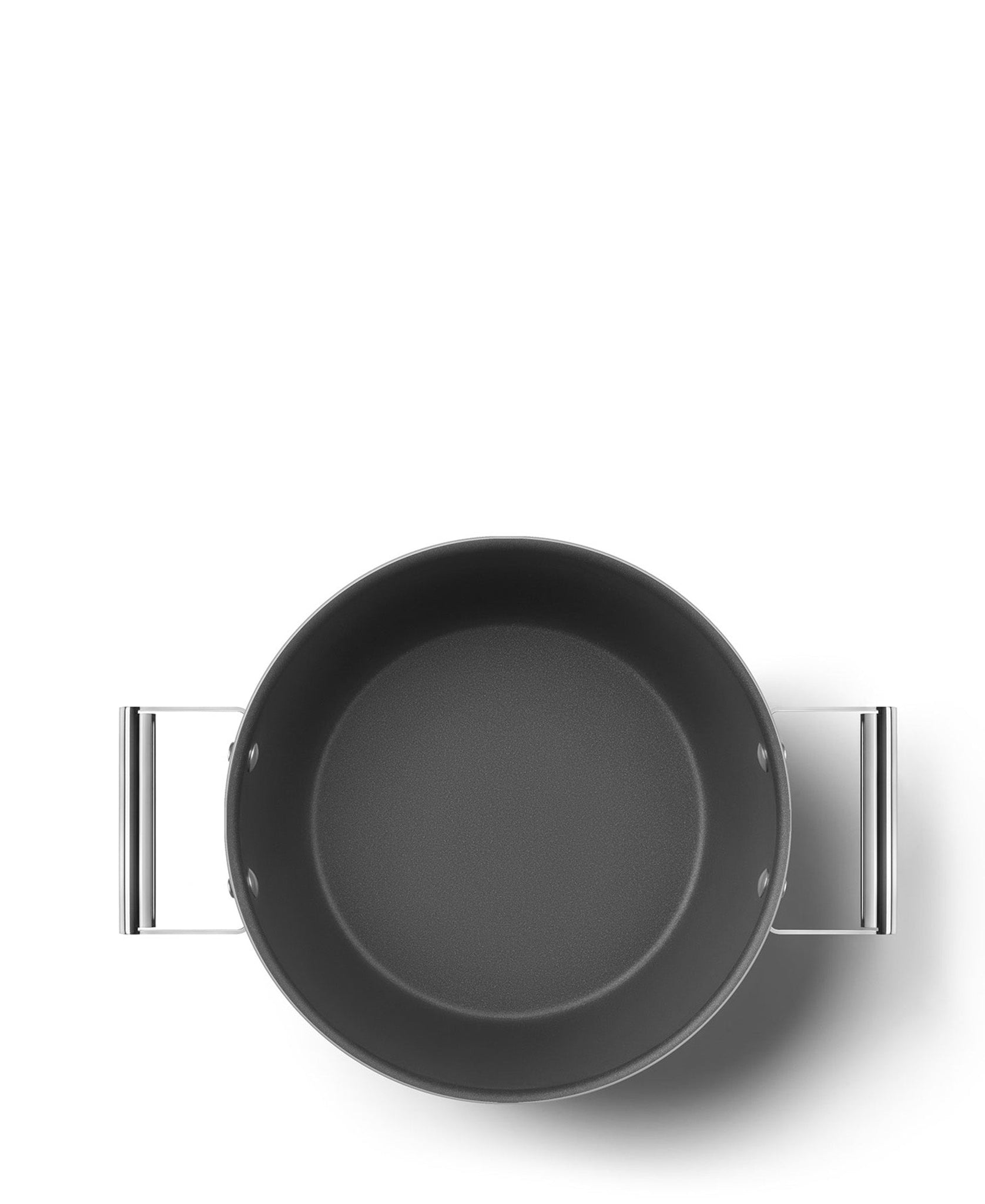 Cooking in style with Smeg! This cookware range brings unmistakable style, superb quality, durability and functionality to the kitchen. Designed and manufactured in Italy, each piece is everything you need to make cooking an absolute pleasure. Produced from cold forged aluminium with a patented steel base for optimal heat distribution and even cooking. The long-lasting multi-layer non-stick internal coating is ideal for healthier and diversified cooking methods without altering the taste of your food.