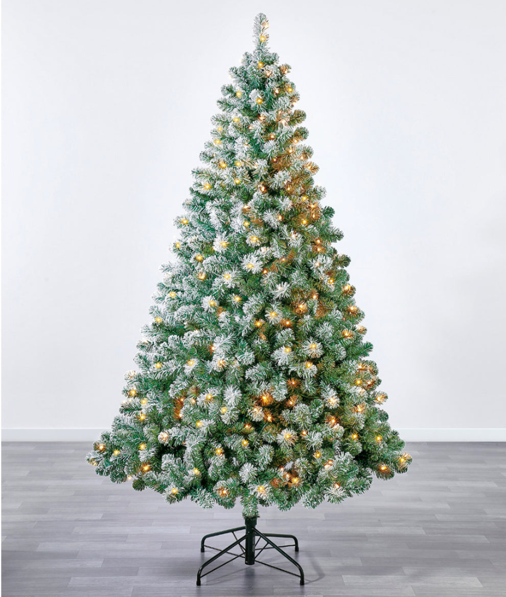 Bring the warm glow of Christmas cheer to your home with our exclusive new range of pre-lit artificial Christmas Trees!It doesn't get more traditional than the Snowy Oxford Pine. Gentle flocking andround cut tips give this tree a timeless, trimmed shape.Not your average artificial: this lifelike tree is incredibly full in foliage and realistic in appearance with 280 perfectly placed, pre-strung lights included, complete with a dusting of freshly fallen snow for a whimsical feel.A lovely warm candle-like glow is created by 280 pre-strung, clear LED lights.Tip count: 725 (the higher the number of tips an artificial tree has, the fuller the tree will look)Light spec: 280 x 5mm LED Micro-dot construction; Burn time: 25 000 hours (if one bulb stops working, the rest of the lights continue to function normally; bulbs are not replaceable), operated on a plugheight (from base to tip): 210 cmmaximum width: 124 cmincludes sturdy, easy-set-up metal base stand hinged branches for easy setup (hinged branches simply fall away from the tree during set up - no rearranging/ pulling down of branches required)NB: this tree is flocked, meaning it has been decorated with a light dusting of artificial snow - expect a little snowfall during setup!How to shape your new tree: lightly fluff the needles, branches and tips for a full, realistic look after unpacking.For indoor use only