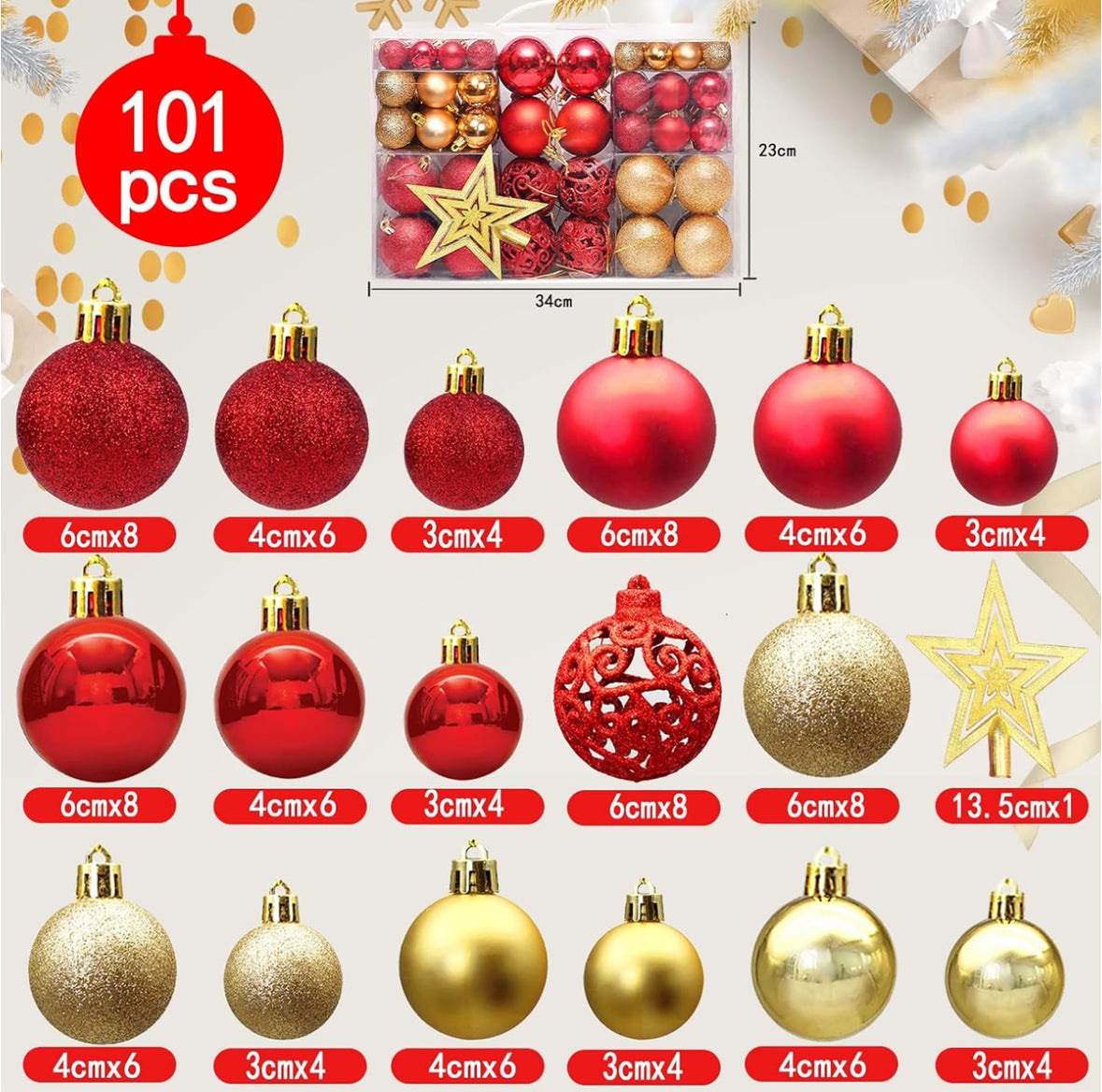 1.Comprehensive Set: Includes 101 pieces, offering a complete assortment of Christmas decorations to enhance the look of your tree and holiday setup.
